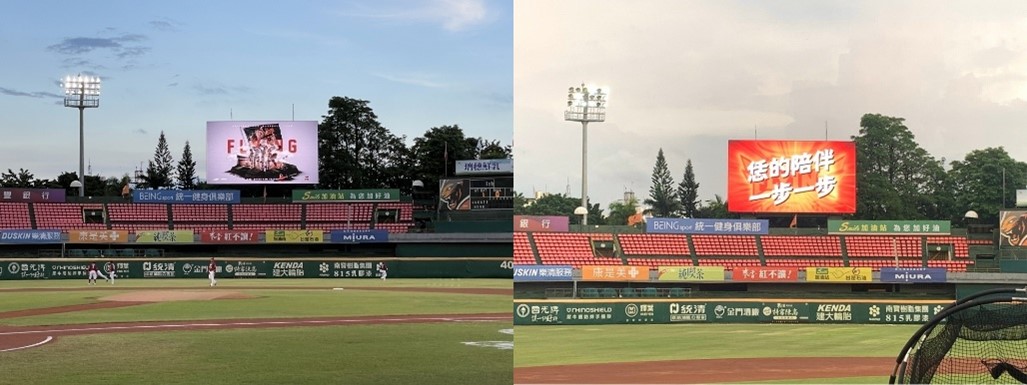 台南市立棒球場亦選⽤喬光科技產出的產品,除了作為記分板使⽤,棒球場的其他看板區也使⽤了喬光的LED電視牆。本公司新推出之